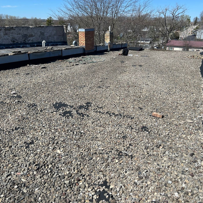 Roofing Solution: The existing roof was stripped, damaged decking was replaced, and a new tapered insulation system was installed to ensure proper drainage.